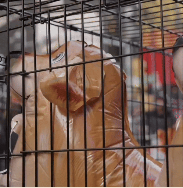 And a thousand more recyclable pet balloons waited to be freed from their cages by passersby on the ground.