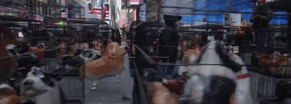 After the Thanksgiving day parade, 1.5 million Times Square shoppers looked up to see thousands of CG dog and cat balloons quietly drifting over New York.